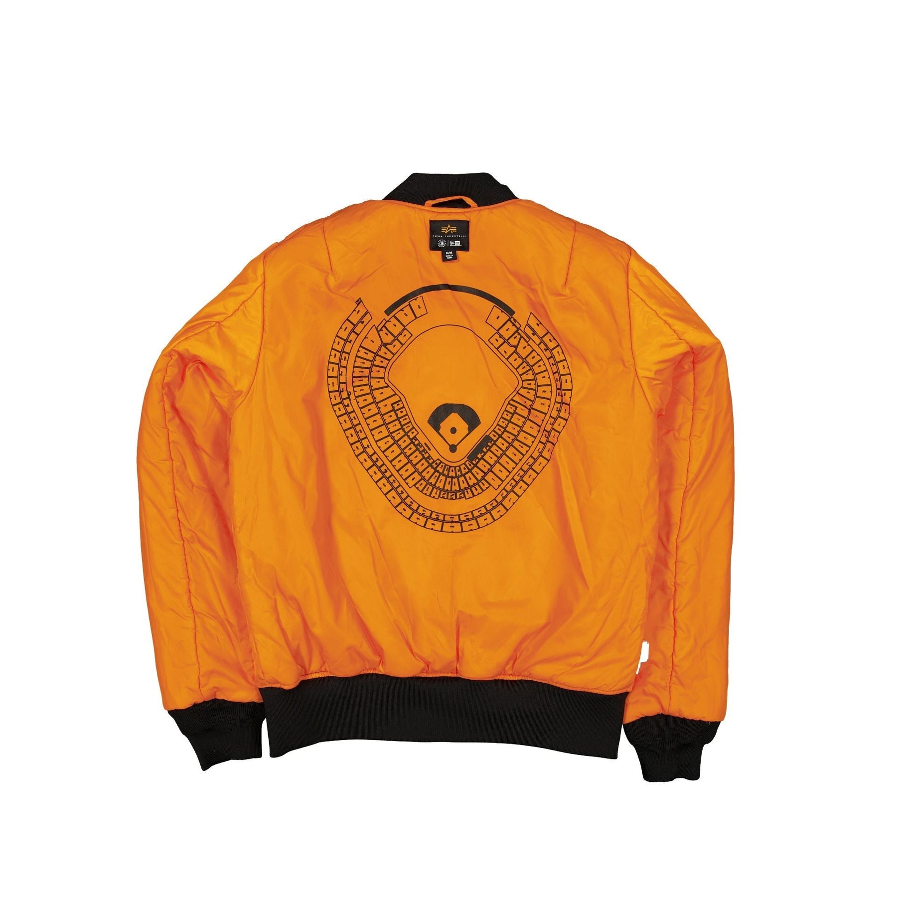 The Alpha Industries x New York Yankees Black Camo MA-1 Bomber Jacket features a screen-printed Yankees logo at the right chest with a matching team graphic at the rear, a full-zip closure at the front, and a woven New Era Cap x Alpha Industries tag at the hem. Additional details include frayed edge alternate team logos at the left chest with New York City flag, New Era Cap patch, and New York State flower patch at the right sleeve. Further details include the Yankee Stadium ballpark blueprint at the interior lining.